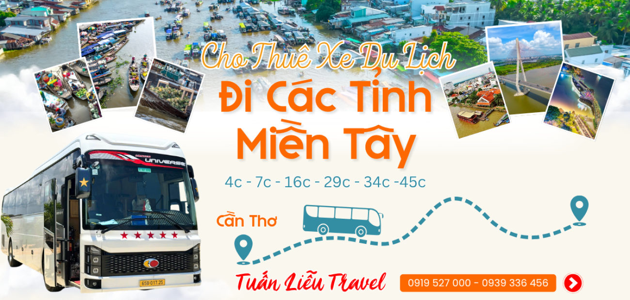Cho thuê xe du lịch cần thơ - nhà xe Tuấn Liễu chúng tôi chuyên cho thuê xe 4c,7c,16c,29c,34c, 45 chỗ, xe đời mới, sạch đẹp, tài xế nhiệt tình – rành đường. Giá minh bạch, hỗ trợ 24/7, có xuất hóa đơn VAT.